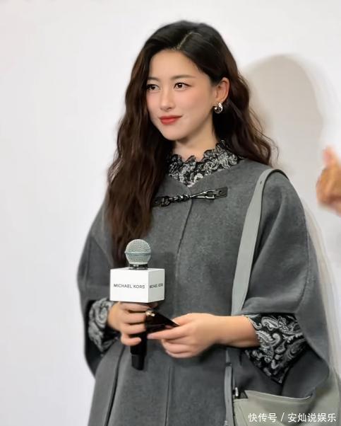10�号的大丸百货活动上,朱珠完全收起了之前那种性感的魅力。上半身穿着一件灰色的羊毛斗篷,上面的领口紧紧收着,袖子宽松得正好把手臂的线条遮住;下半身搭配了一双黑色的长筒靴,靴口正好在膝盖上面,把腿看起来更长更好看。最让人惊叹的是她的脸 —— 靠近一瞧,皮肤光滑得看不出毛孔,眼角没啥明显的皱纹,苹果肌饱满得刚好,笑的时候线条特别自然。